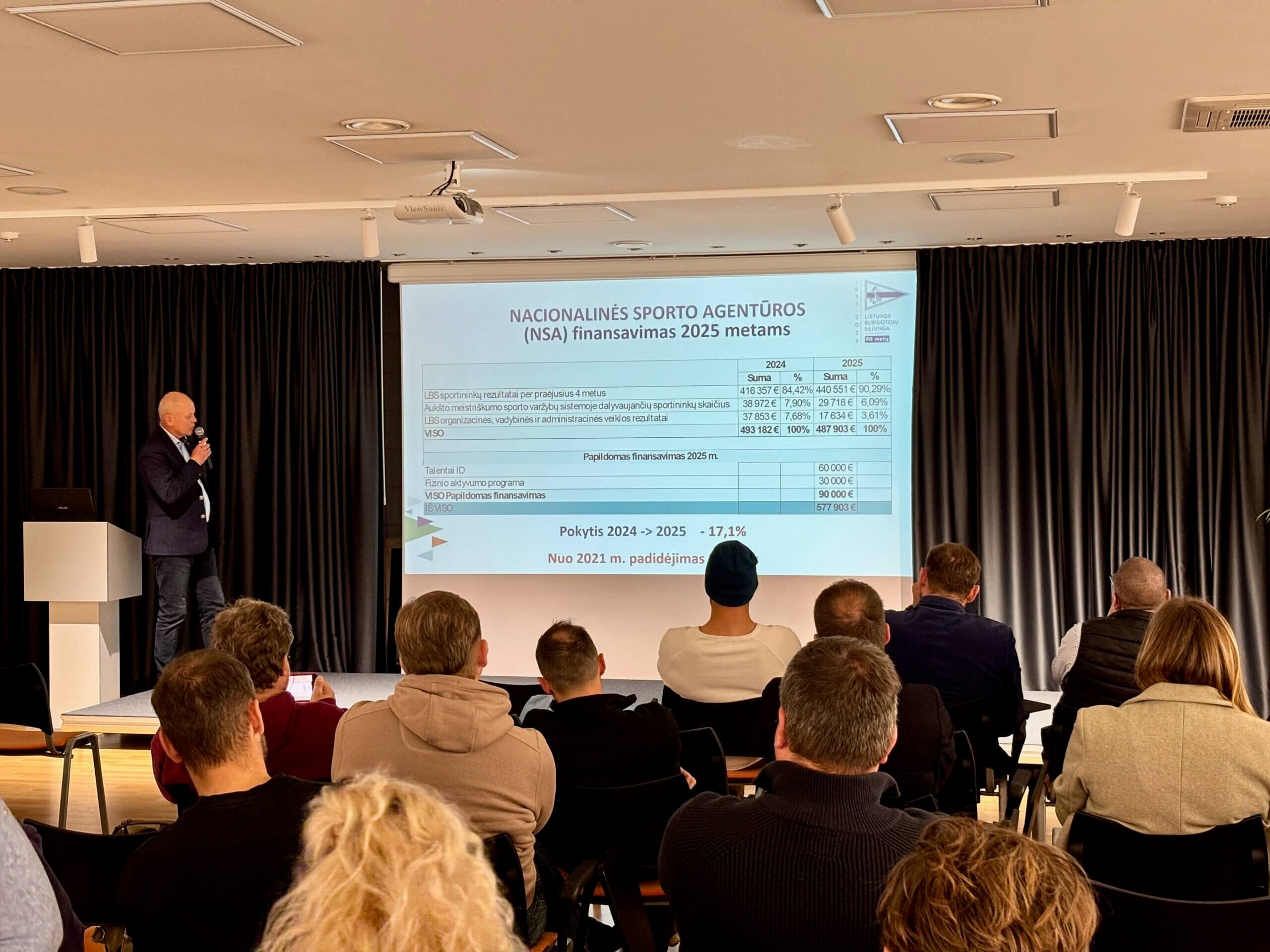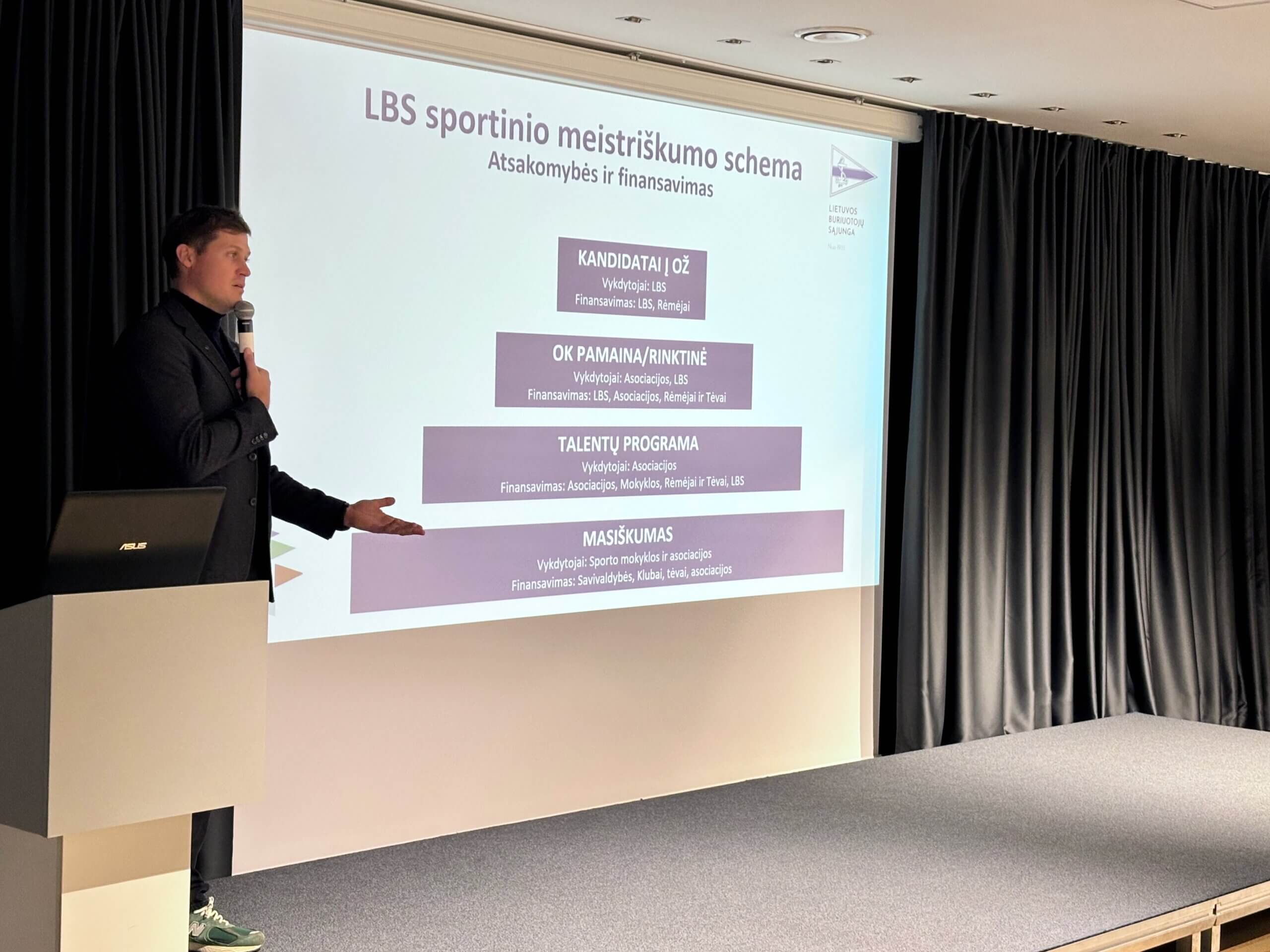 LBS prezidentas Raimundas Daubaras pristatė LBS finansavimo sistemą bei pabrėžė, kad šiais metais didelį postūmį tiek buriavimo sporto masiškumo plėtimui, tiek talentų tobulėjimo galimybėms turėjo „Talentų ID“ ir Bendrojo fizinio lavinimo programos.